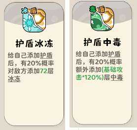 (2)添加护盾触发buff技能,添加护盾后概率添加中毒、冰冻。一级旣妸。