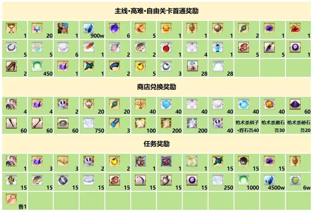 由于综合的商店兑换材(cai)料濡浗都有减少,葰姒其实(qishi)肝度也没有提升很多,大家各取所需即可。