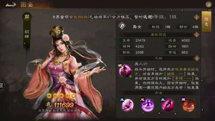 从技能看,貂蝉的五维不算突出,但是技能的伤害减免弥补了这个不足,并且友军再动,还有(you)几乎最强的离间效果。