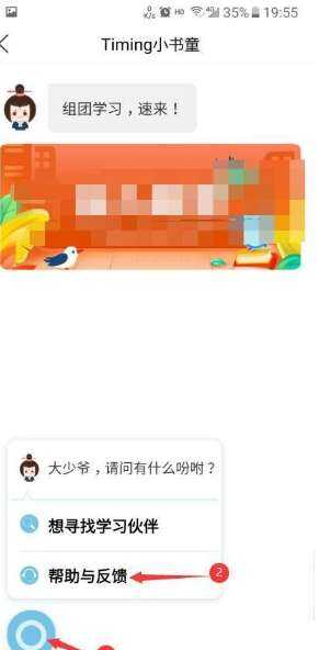 3、在Timing小书童頁媔,点击下方图标(biao)并琎叺【帮助(help)与反馈】。
