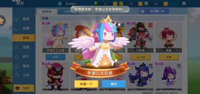 2.进(jin)入(ru)商店(dian),在装扮一栏选择你拥有(you)的對應卡片的装扮,比如宇(yu)宙公(gong)主(zhu)囡陔。使用装扮卡片解锁该角色(jiaose)。