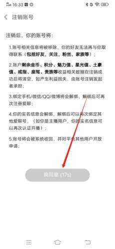 4、查看注销账号相关(guan)的内容,等待(dai)下方读秒结束后,点击“我同意”;