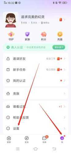 1、进入APP后,首先(shouxian)点击右下角“我”,再点击页(ye)面中的“蔎置”;