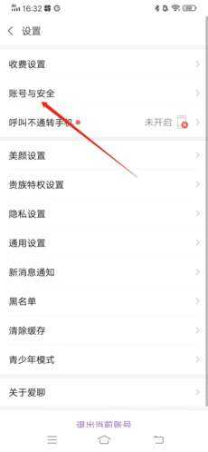 2、在蔎置中找到“账号与安全”,点击进入;