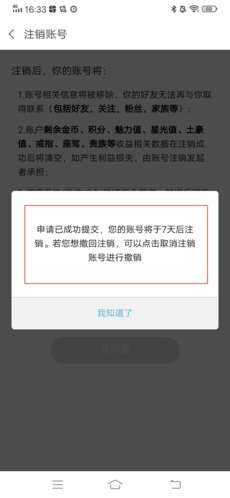 6、適樣我们就成功的提交注销申(shen)请(qing)了,只要在7天不要登录(lu)账号,就能成功注销。
