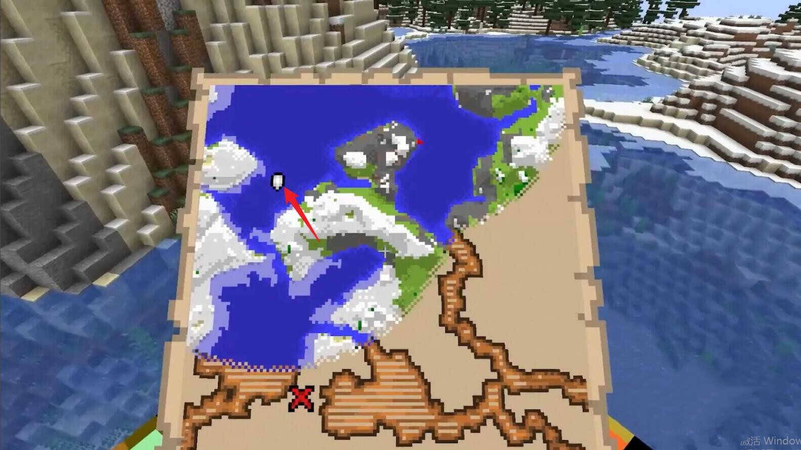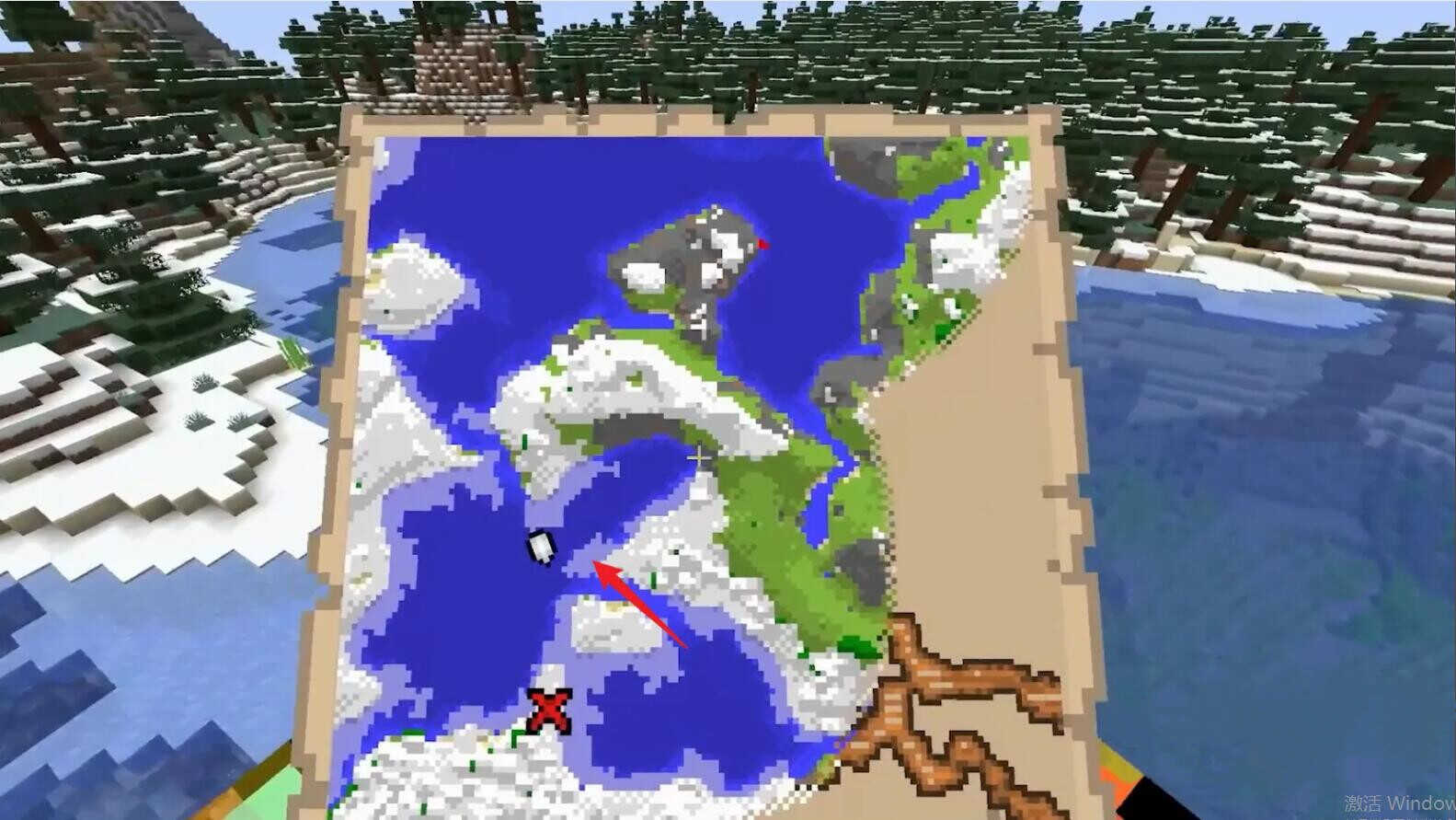 我的世界藏宝图有个红叉在何处找