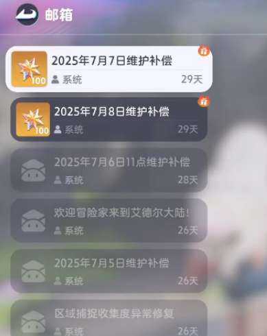 最后就是要参与游戏的开服活动,因为开服活动里面也会给到大家一些补偿以及福利,这里的话通过邮箱就可以看到目前的一些通知,因为辉石作为目前游戏当中比较用处比较多的货币,必然会出现在开发活动的补偿里面,这里给到补偿一般是在系统进行维护的时候(hou)就会给到的,而(er)且一次性也会给很多,数量达到100~200个左右,参与此类维护的话,基本是不用大家怎么去花时间的,只要进行点击就可以拿到了。