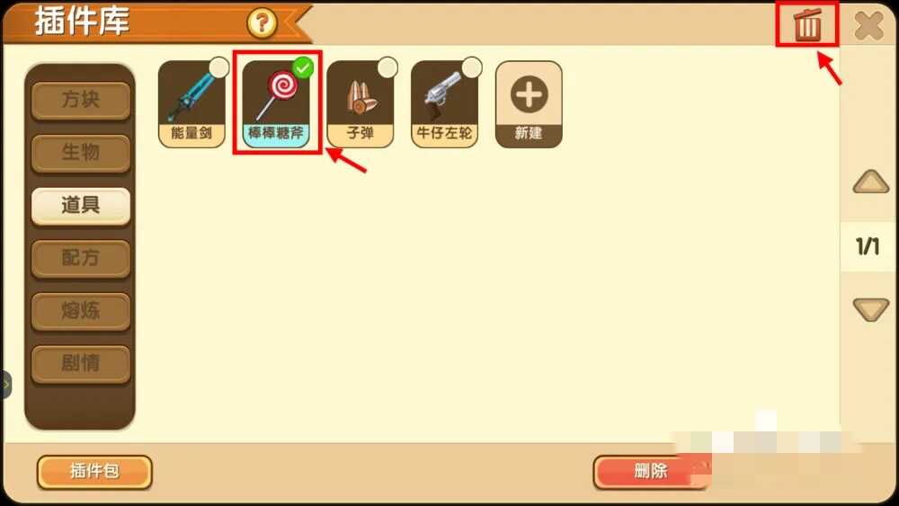 迷你世界如何删除插件库的插件
