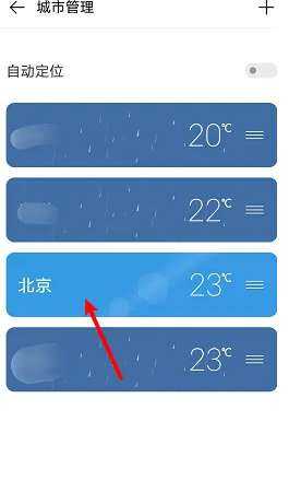 2、在城市(chengshi)天气页(ye)面,长按點击一(yi)个(ge)城市(chengshi)。