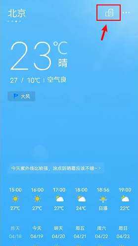 1、手(shou)机(ji)打(da)开(kai)天气,點击左上角的城市(chengshi)图标(icon)。