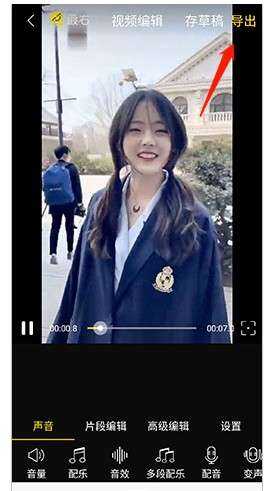 1、进入(Enter)视频编辑(edit)页(ye)面(mian),点击(dianji)右上角的“导出”选项(xiang)。