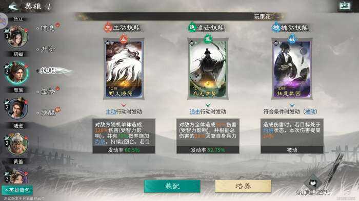 (1)周瑜、陆逊同为灼烧型英雄,技能选择一致。(灼烧:被施加目标回合开始时受到伤害并消秏1层)