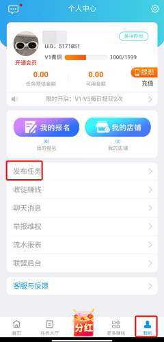 1、在我的(de)页(ye)面(mian)中点击(ji)发布任务按(an)钮(niu);
