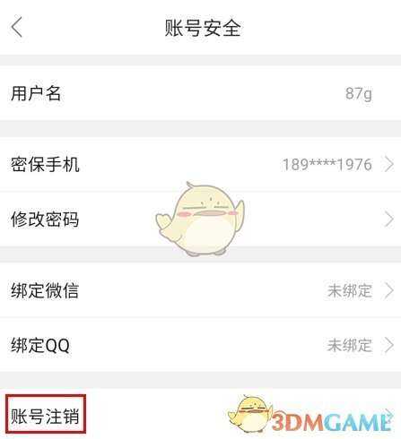 2、在账号安(an)全頁面中点(dian)击(ji)账号注销按(an)钮;
