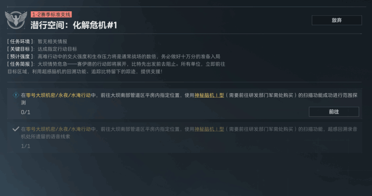 任务 “批量完(wan)成”:每局进图前明确目标,优先选择能同时推进主线 + 支线的任务组合(如击杀、调查、物资收集同步进行),减少重复进图次数。