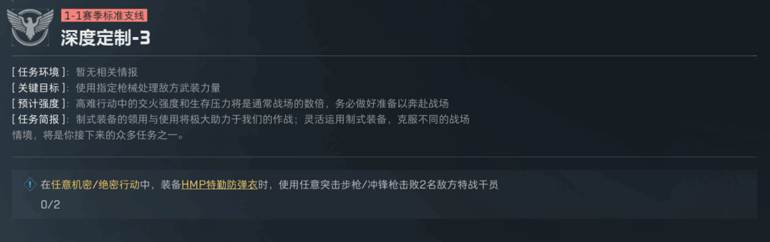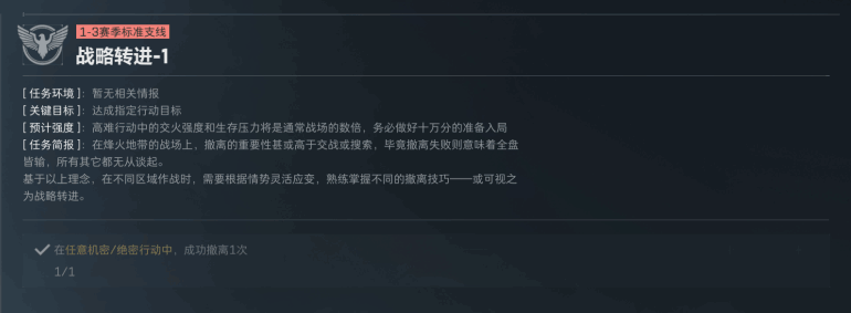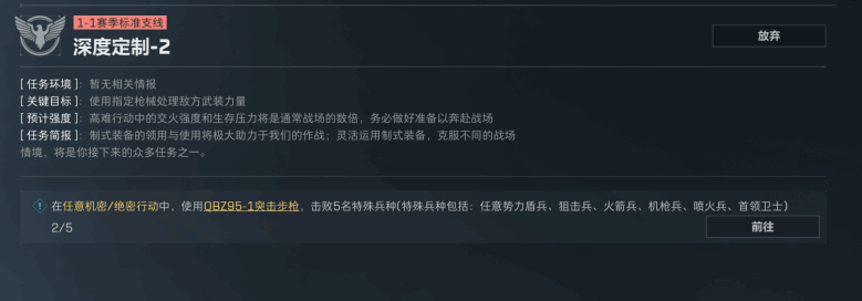 完(wan)成“旅途起点”“深度定制-1”“战略转进-1”,先接取任务再进图,