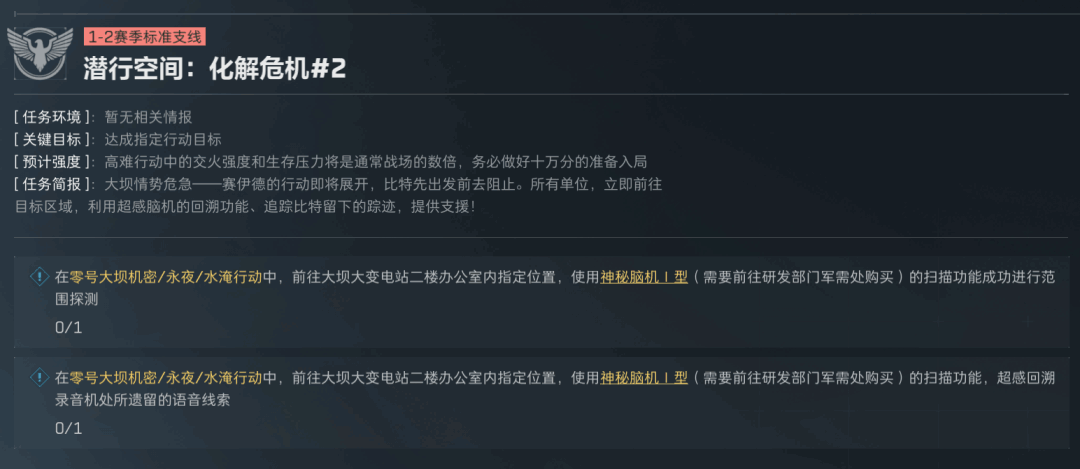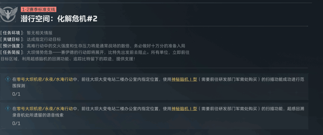 在集装箱、坝顶、东楼一楼办公室收集任务道具,最后前往 “行政东楼二楼暗门内会议室” 完(wan)成最后 1 次脑机调查,撤离后推进深度定制至 5 级。