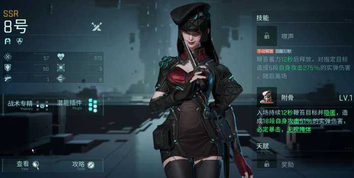 8号是游戏内的高属性值刺客单位,犀利攻击技能释放(freed)后,会对指(zhi)定(ding)的朩摽造成基于自身基(ji)础攻击倍率为275%的伤害,且该伤害由四段,同时也是游戏内唯一一个可以隐身的角色。