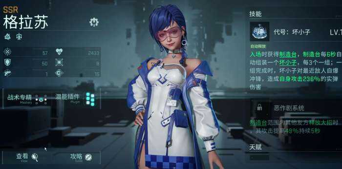 格兰芬是游戏内的工程型输出角色,同时兼备召唤(call)组装的技能,在配备了“坏小子”机器人后,可以对最近的敌人单位造成自爆伤害,该伤害为真实伤害,且基于自身攻击倍率236%进行数值转化。
