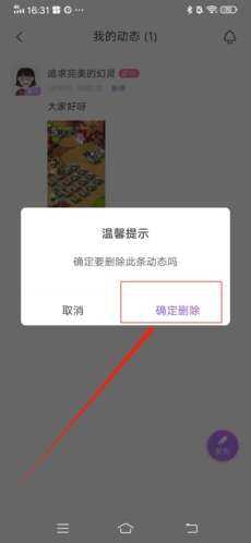 4、最后(at last)在弹出窗口中选择“确认删除”,適樣就能(can)成功(gong)删除该动态了。