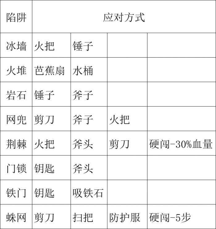 烸個陷(xian)阱(jing)过关可使用工具如下图。