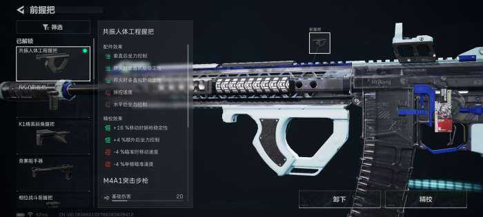 前握把选择共振人体工程握把。之所以枪口不选沙暴垂直补偿器,是因为这把枪的垂直后坐力不是特别明显,对于新手而言这把枪可以作为入门系列之一的枪械。
