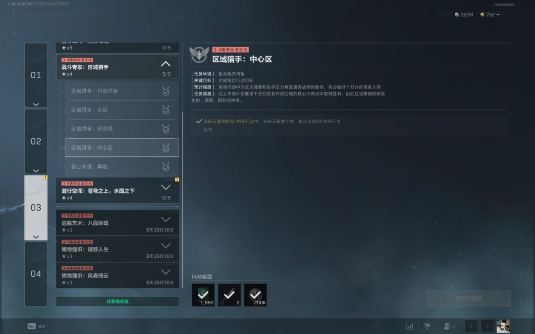1、任务目标(Target):在航天基(ji)地(di)机密/绝密行动中,在航天基(ji)地(di)全域,累計击敗3名特战干员