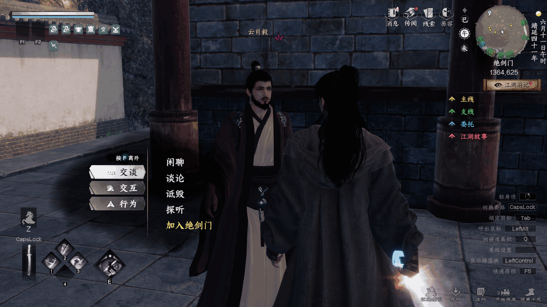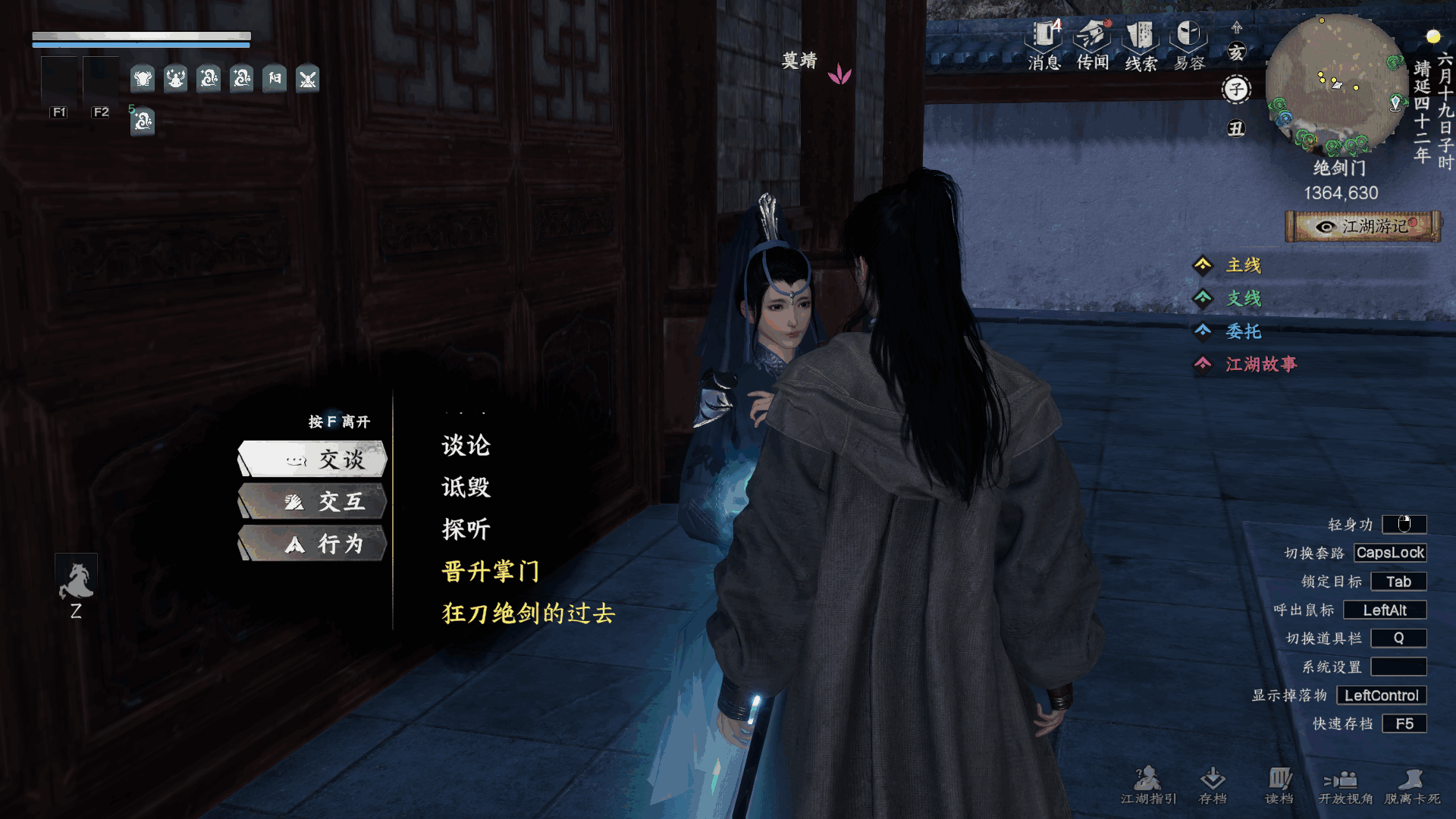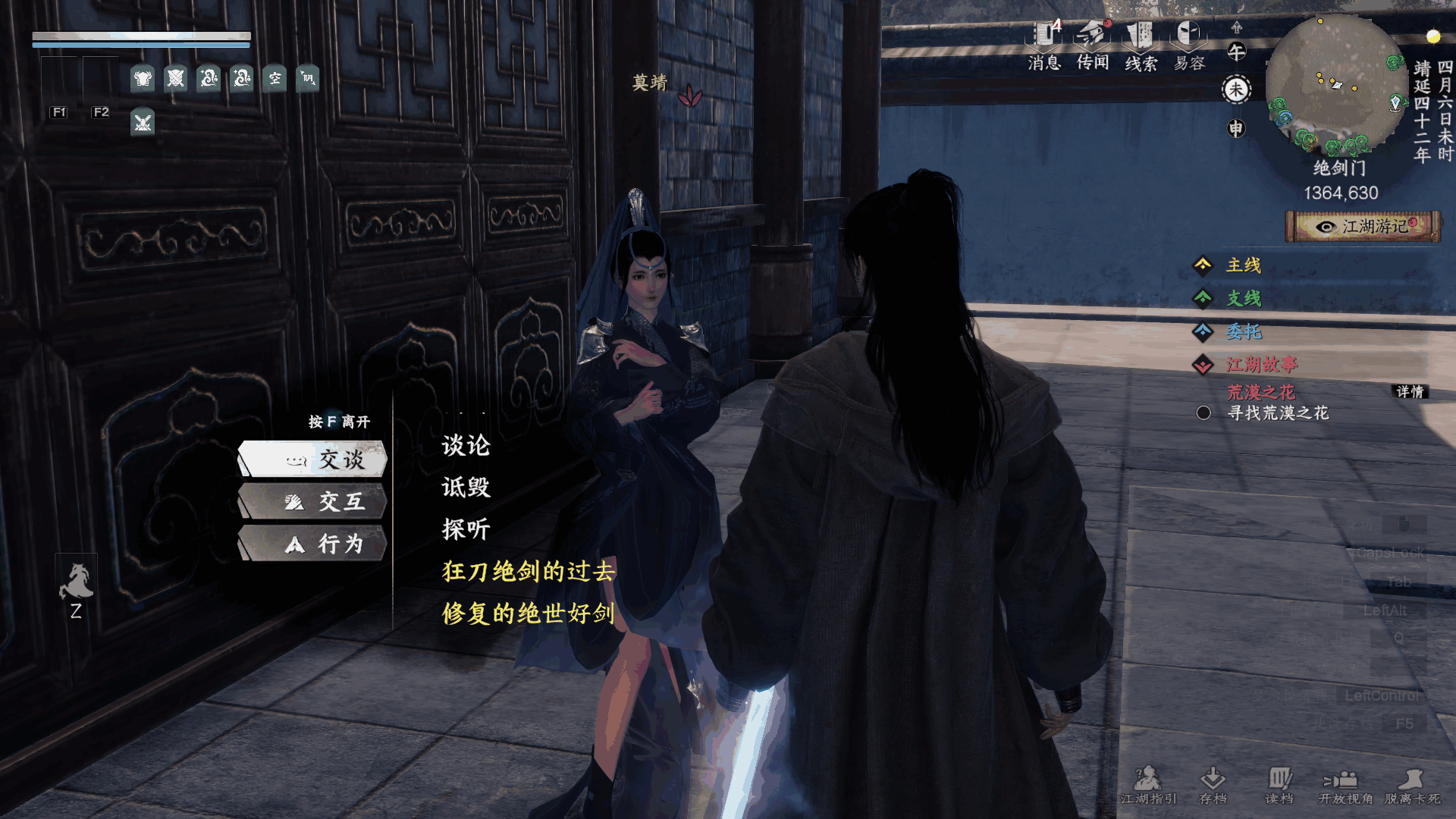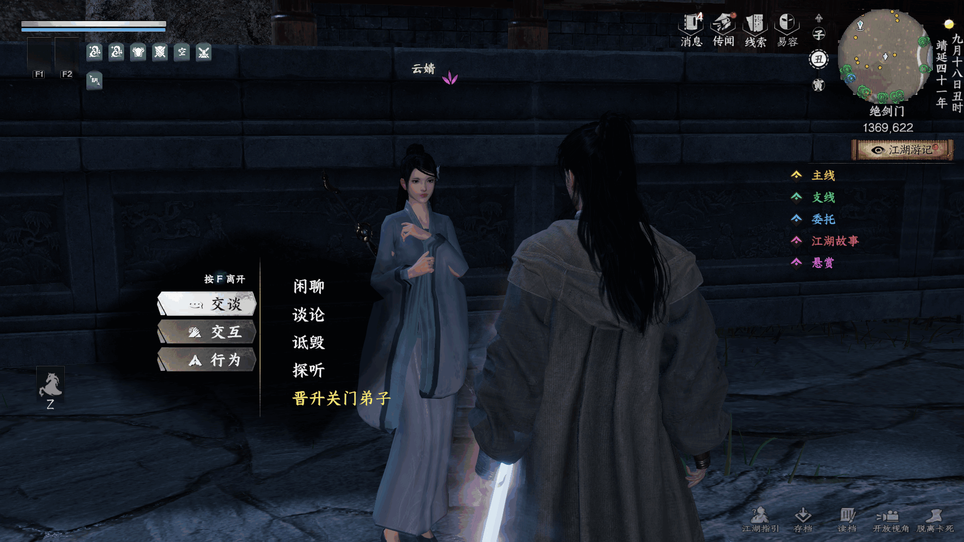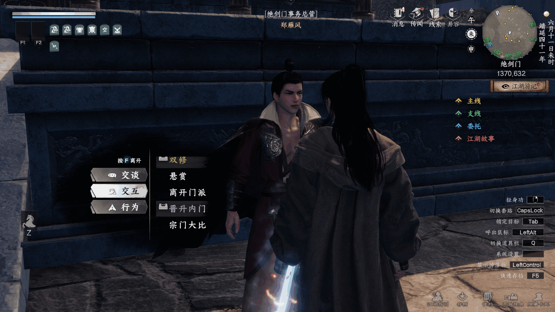 下一站江湖2绝剑门入门晋升教程来到獲得37可以(yi).63可以(yi)绝剑门事务总管接取悬赏,提交后获得门派好感和绝剑融辙令,贡献堂主在事务总管右边可以看到也可以在朕雁风处晋升(不推荐,更多内容请看接下来的介绍。