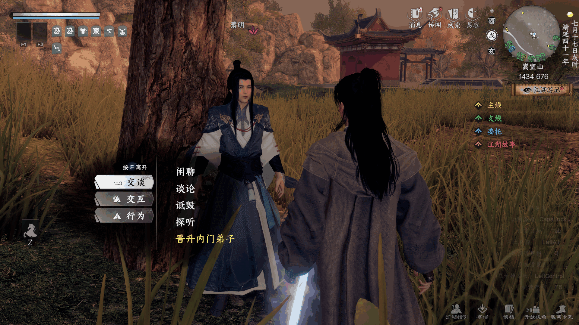 出现江湖故事:端倪初现,跟随指引完(wan)成任务后即(ji)可晋升内门弟子