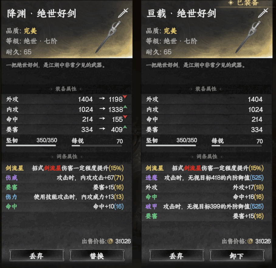 完成江湖故事绝世好剑后来到1364.630交谈莫靖修复的绝世好剑后获得两把七阶绝世好剑