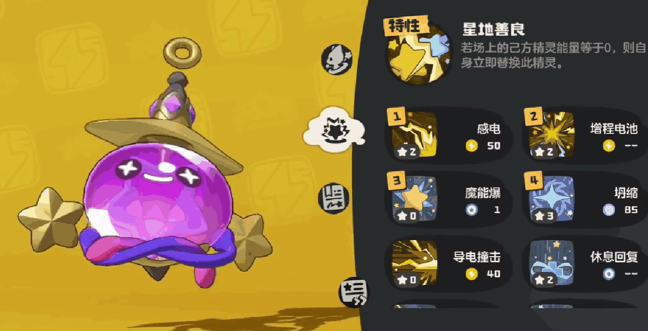 小皮球核心(hexin)特性“心地善良”,如果(guo)场上的己方精灵能量(liang)低于零,则自身可以立刻替换该精灵,由于特性效果,小皮球可以协助其他的玩家在缺少能量(liang)时,快速上场,赋予队友再战机会(Chance)。