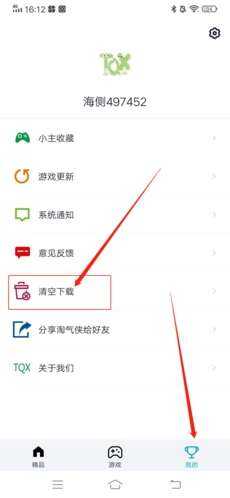 1、进(jin)入(ru)淘气侠APP后,首(shou)先(xian)點击右下角“我(wo)的”,找到(dao)页(ye)面中的(middle)“清空下載”。