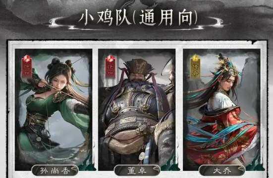 三国:天下归心小鸡队推荐搭配大乔则稳定施加负面状态,为孙尚香创造完美输出环境。该队获取门槛低,适合微中氪玩家,喜欢可以往下继续看。