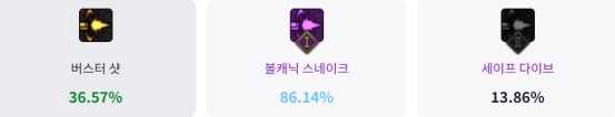 数据方面持续加强【镭射狙击】、【G-61重力手雷】、【C4飞弹】,三个技能的表现和占比并没有足够空间展示技能的特性。