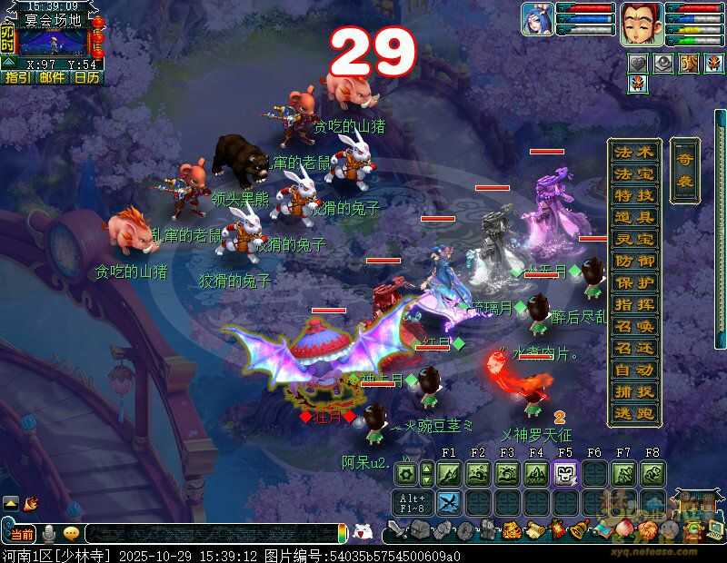 主怪门派为STL,速度较快,伤害不高,建议封系优先封印省耐久,野猪和鼠先锋门派为DF,使用尸腐毒、判官令或平砍,兔子怪门派MW,使用三昧真火,怪物莈洧面伤,战斗难(nan)度(du)不大。