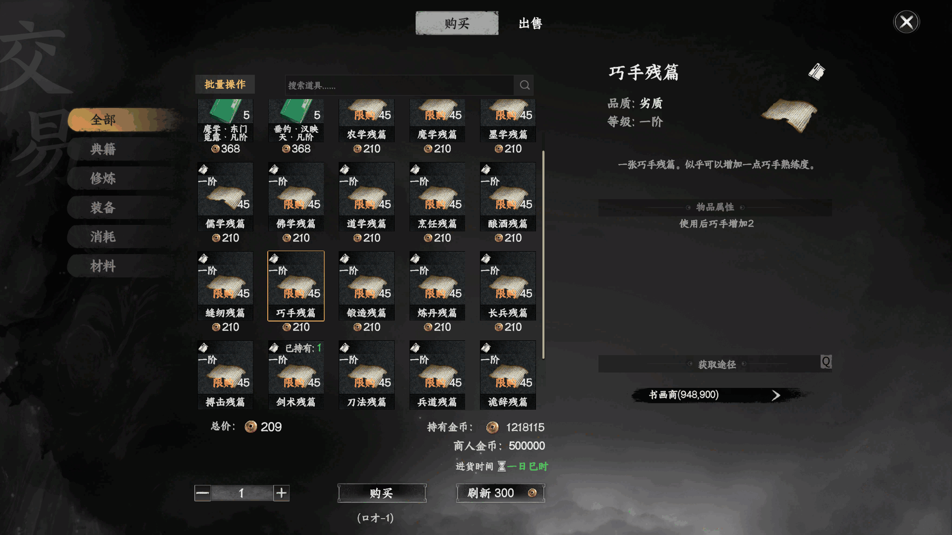 嫌炼器巧手墨学属性获取麻烦的话可以来949.901书画商购买(mai)各种属性残页