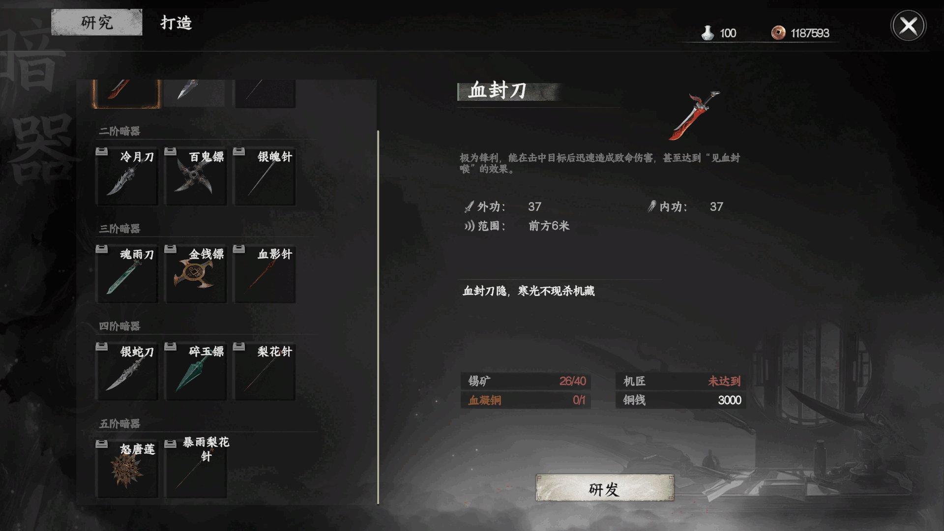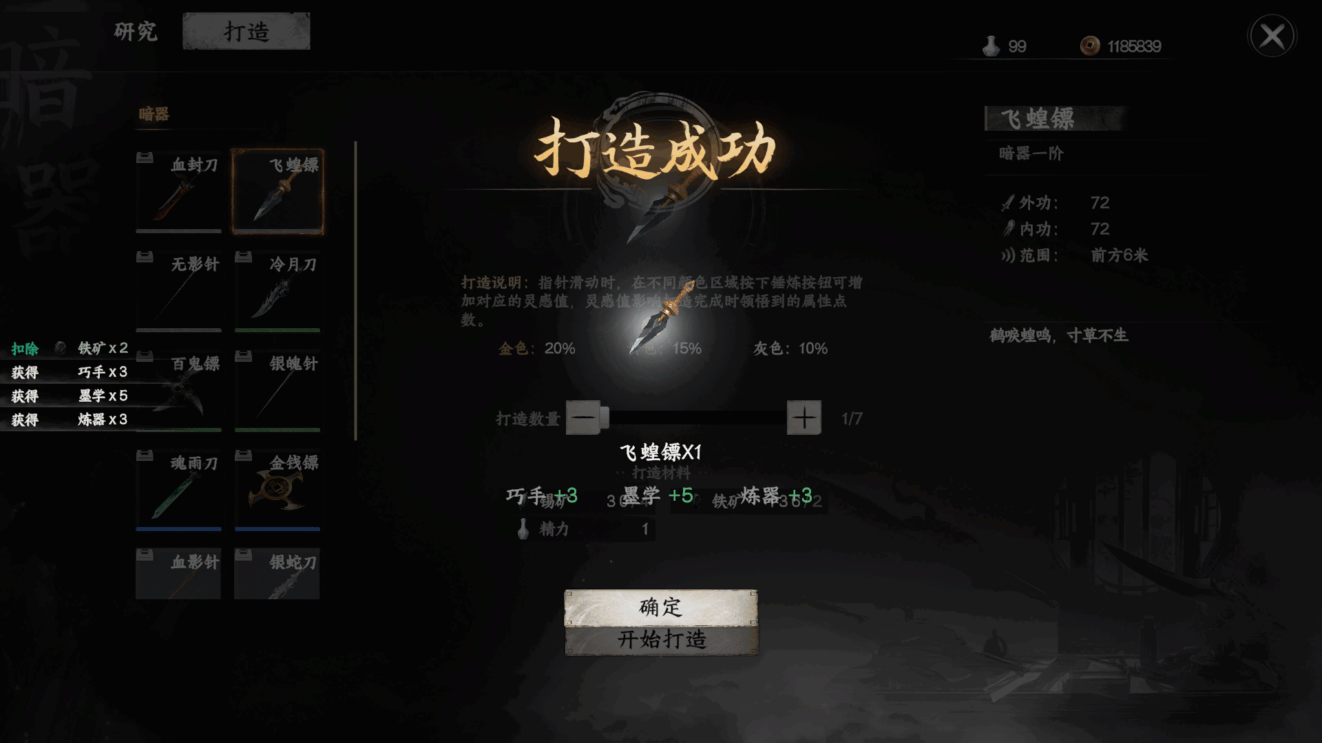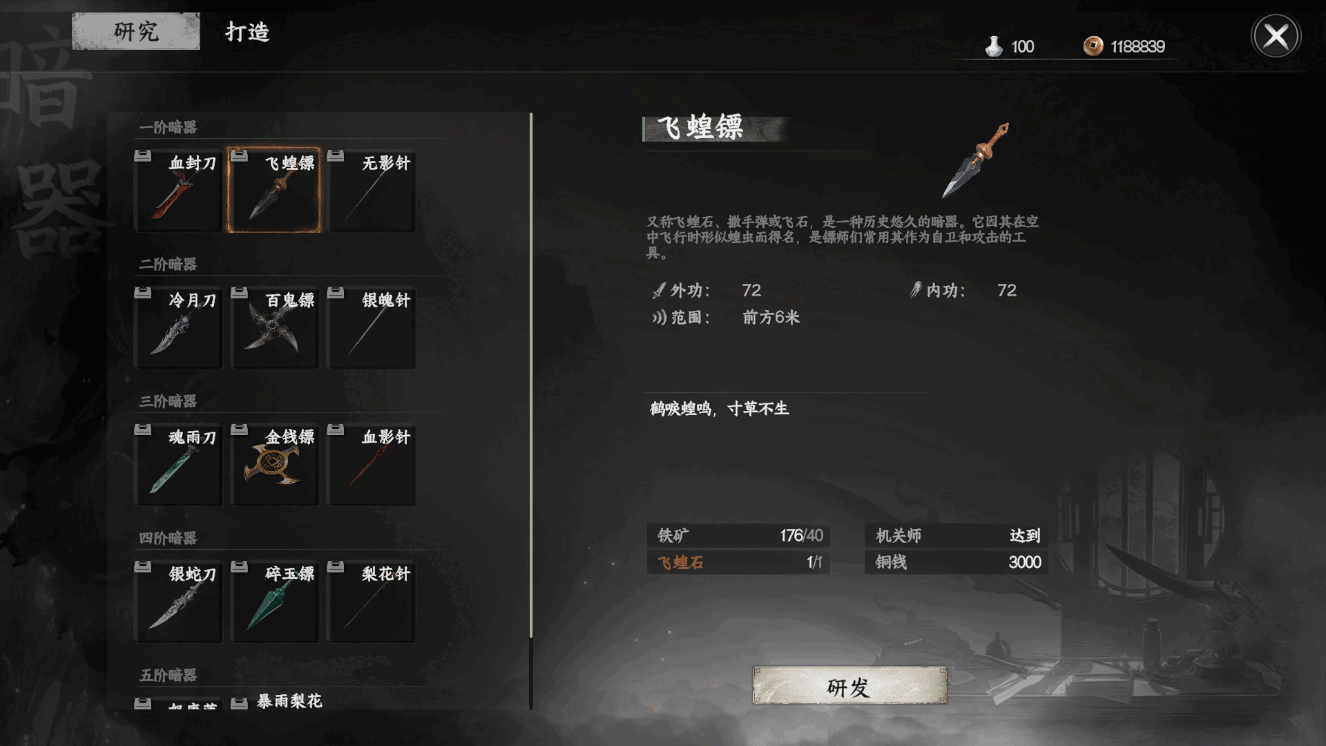 晋升身份(identity)需要研究并且打造不同等级的暗器获取晋升任(ren)务(wu)