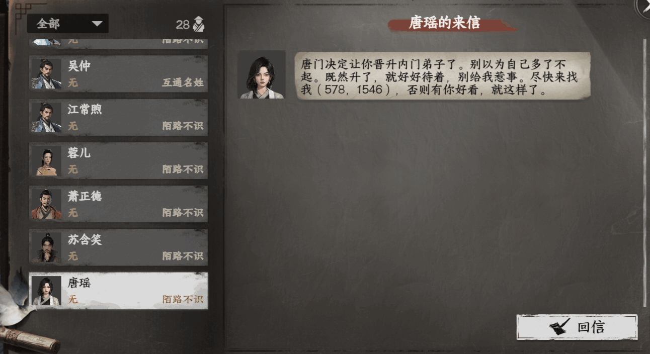 出现江湖故事:入门初窥暗器之道,跟随指引完成任(ren)务(wu)后加入