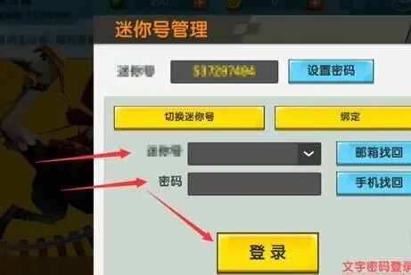 3、弹出超级多的信(xin)息栏,输入(shuru)要登(deng)录(lu)的迷你号和密码,点击(ji)登(deng)录(lu)就可以(jiukeyi)了。