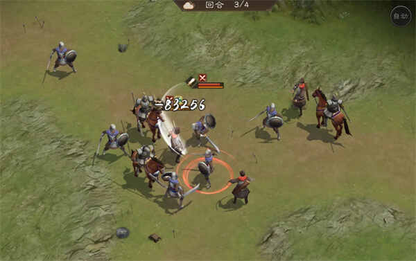 第三回合我方高亮区域步兵攻(gong)击贴近身边的敌方弓兵,右侧步兵卡位待机(因为上回合敌方攻(gong)击已经残血,这回合攻(gong)击会被反杀),骑兵斩杀左侧敌人(diren)步兵,弓兵依然在后方攻(gong)击敌人(diren)骑兵。