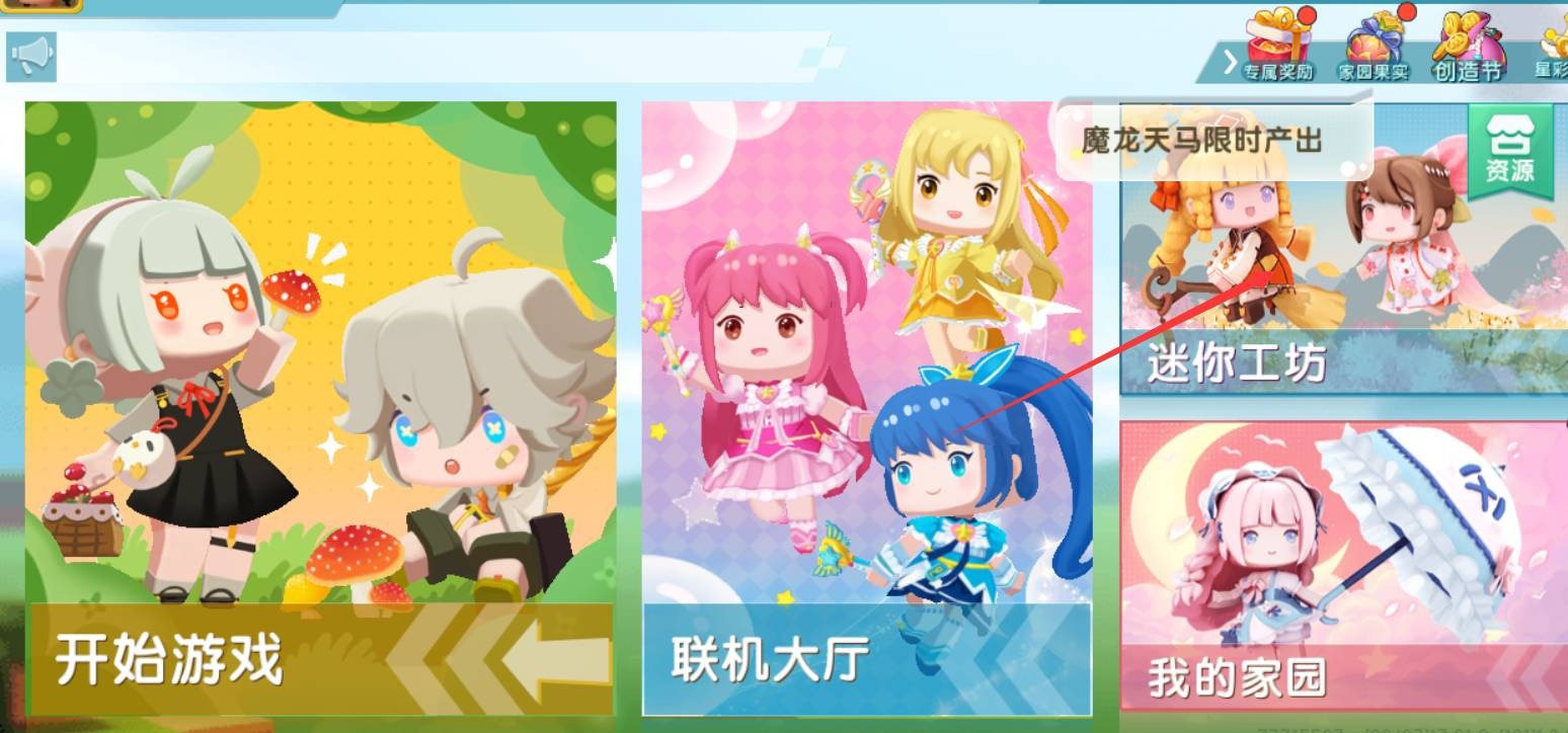 1,在迷你世界的主页点击(ji)迷你工坊。
