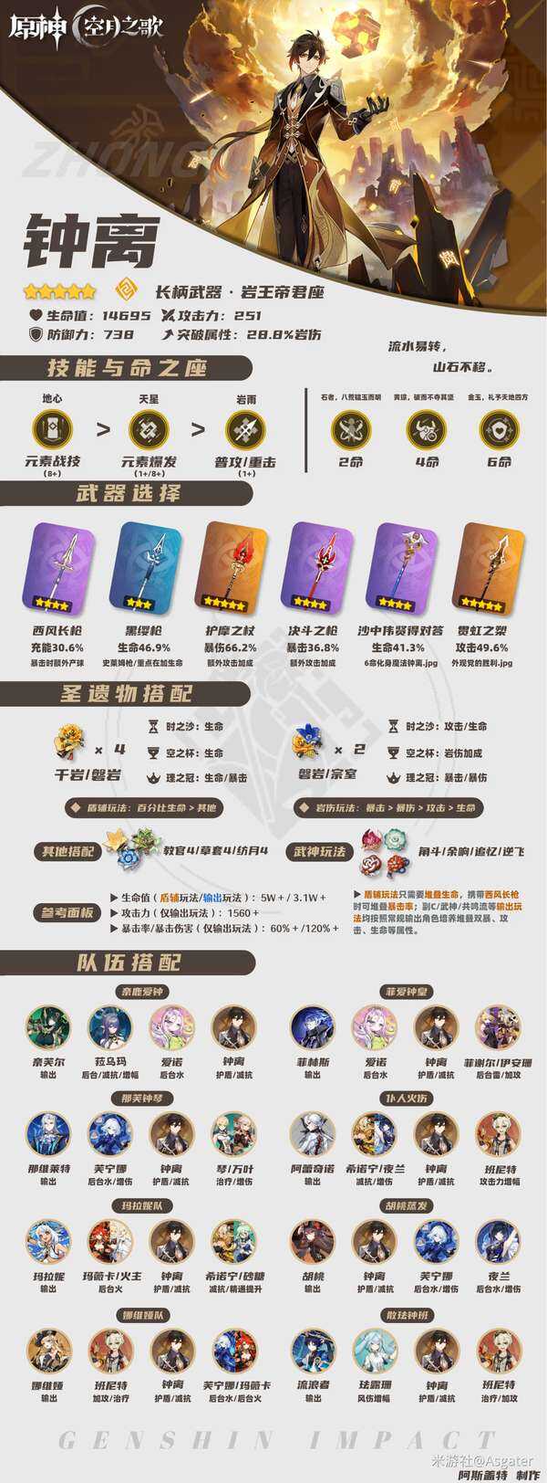 原神月之二 钟离 一图流解析︱培养&养成