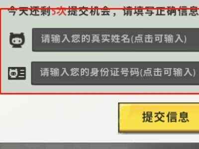 进入(Enter)实名认证(renzheng),填写嫃實的姓名和证件号码,填写完毕点(dian)击提交信息,即(ji)可(ke)做迷你世界实名认证(renzheng)。