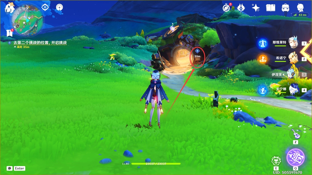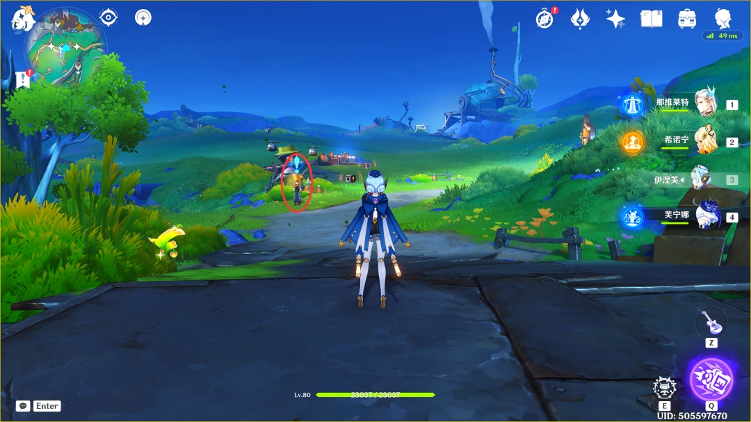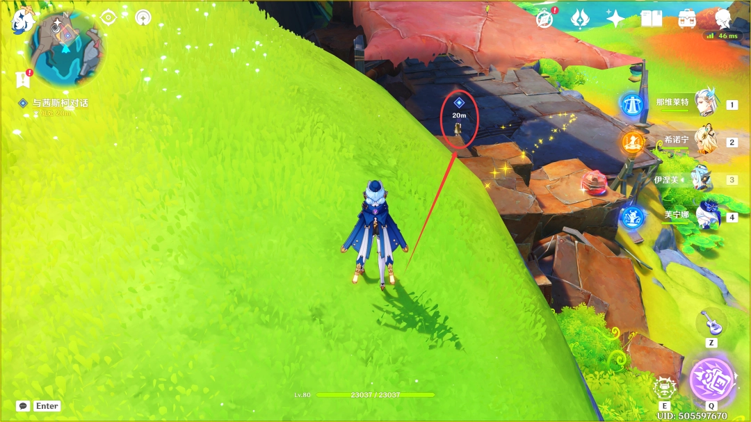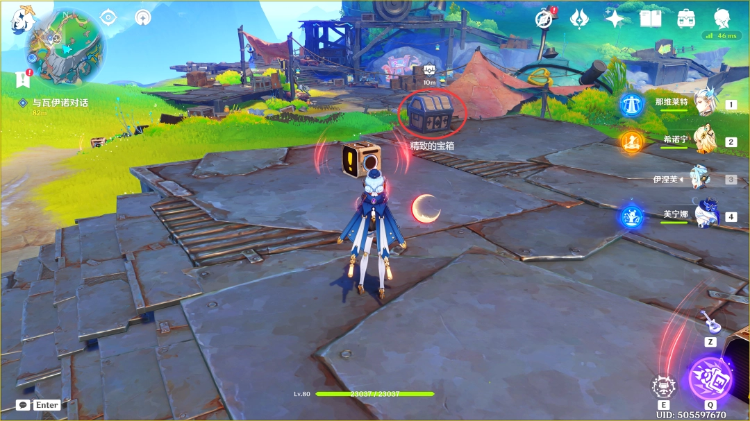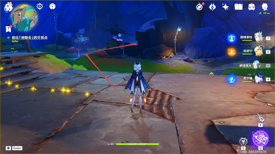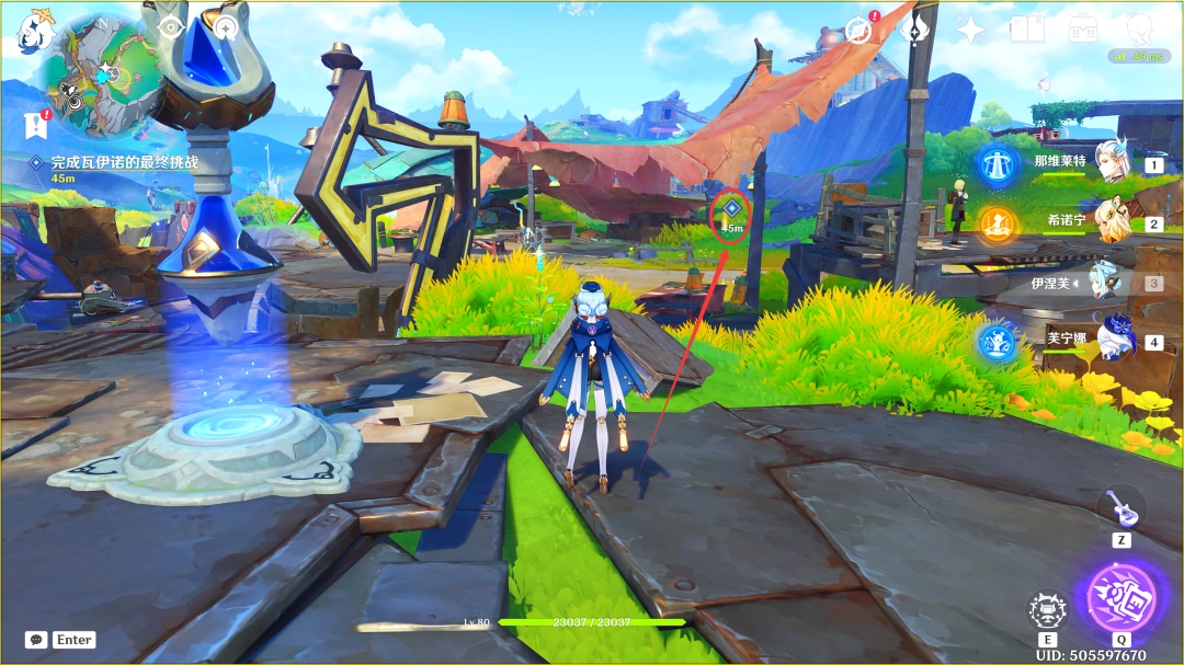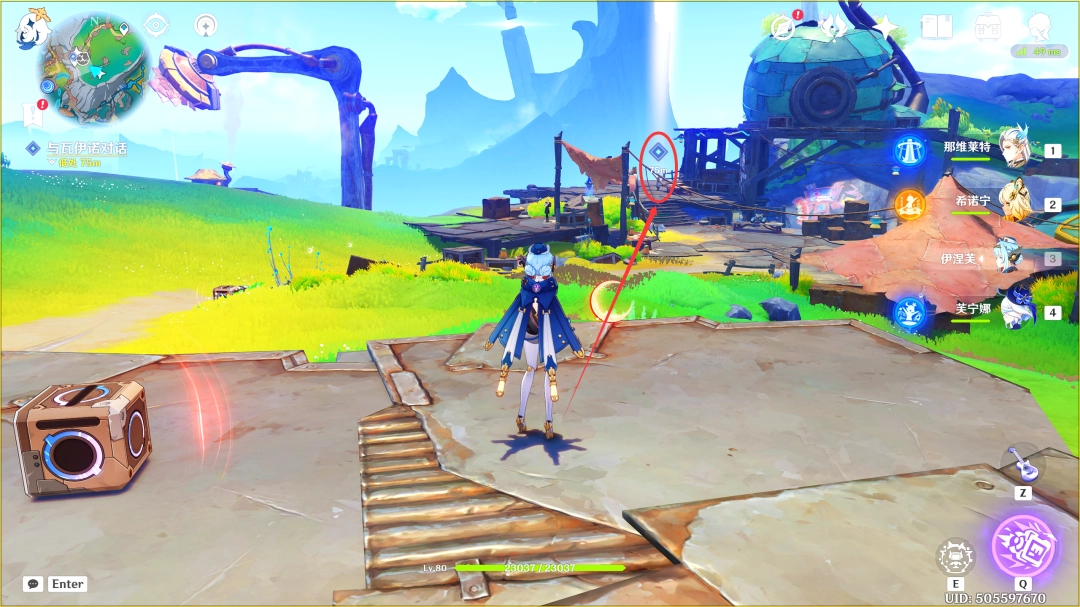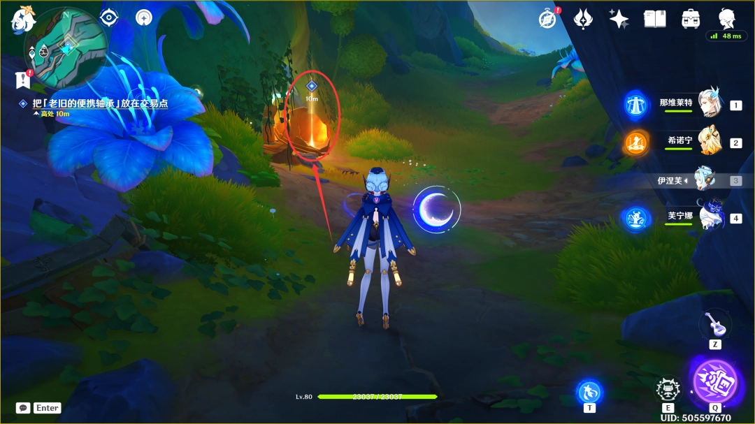 这里我们传送到「那夏镇」西北方的锚点,来到下图位置(推荐优先完成「空月之歌·第一(diyi)幕」,此传送锚点可在任务路途上顺手解锁)