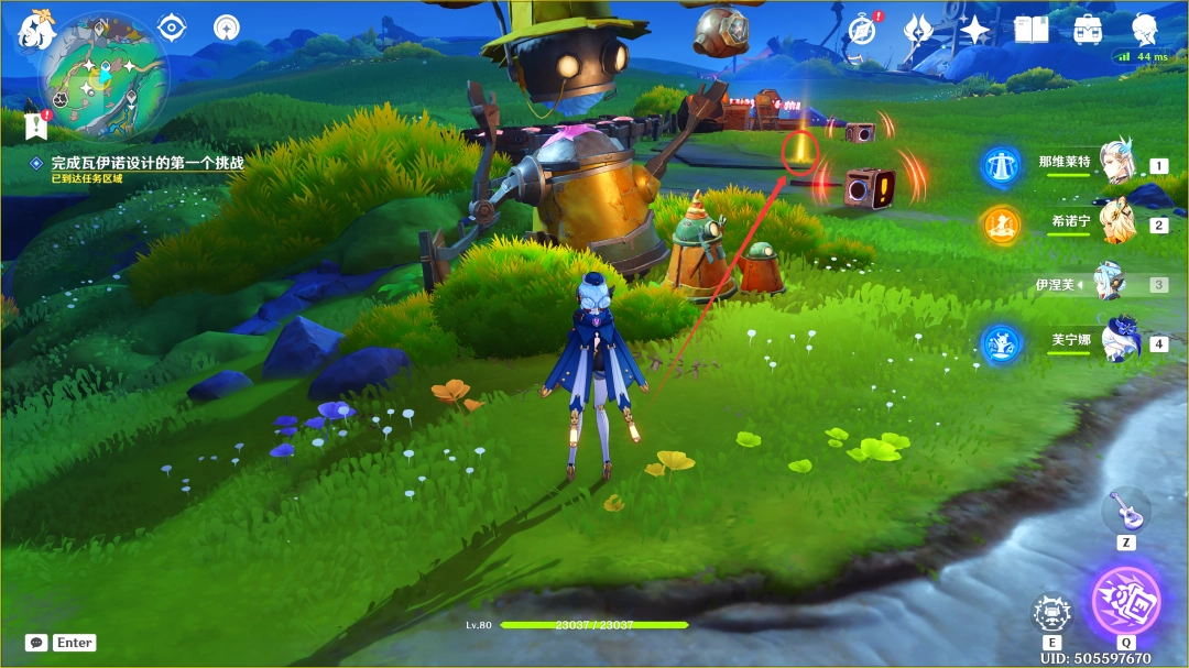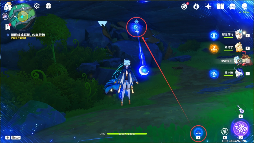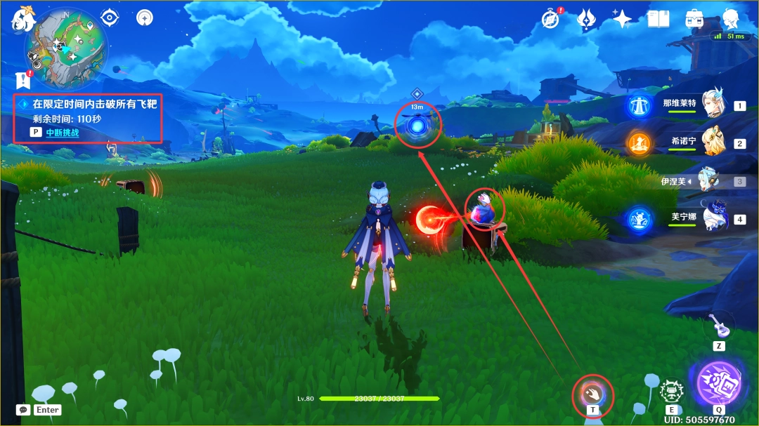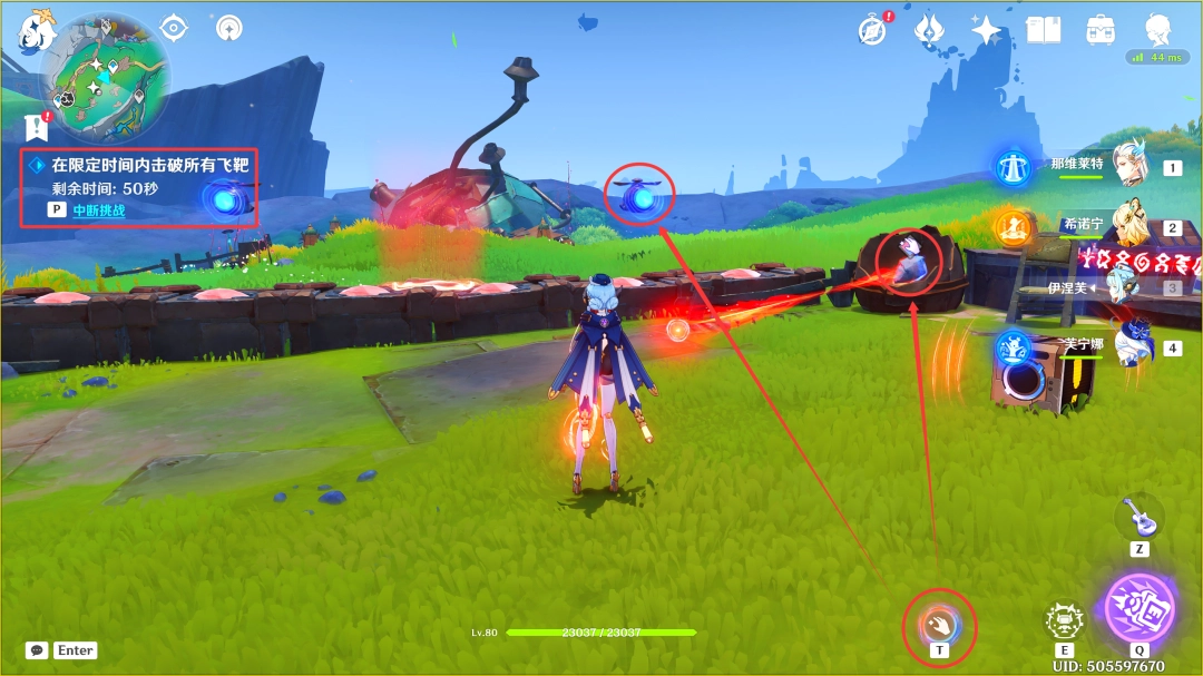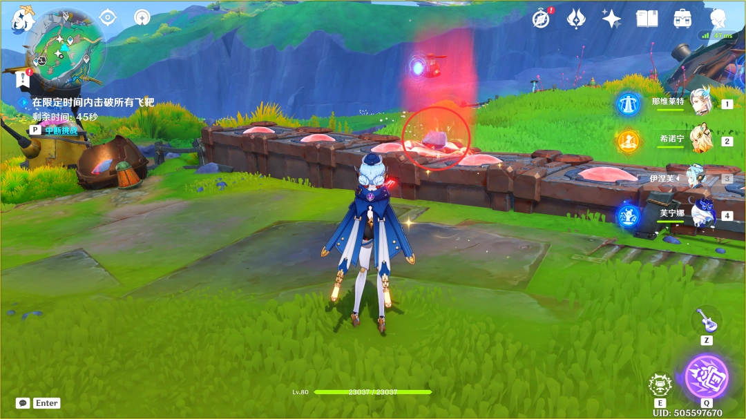开启挑战后,我们利用「月矩力」吸取「双极」石块,需(xu)要(yao)在120秒内,将出现的所有飞靶击破(这里需(xu)要(yao)我们沿路击破飞靶,中途需(xu)要(yao)借助「月灵旅路」快速移動,完成挑战后不会(hui)出现宝箱)