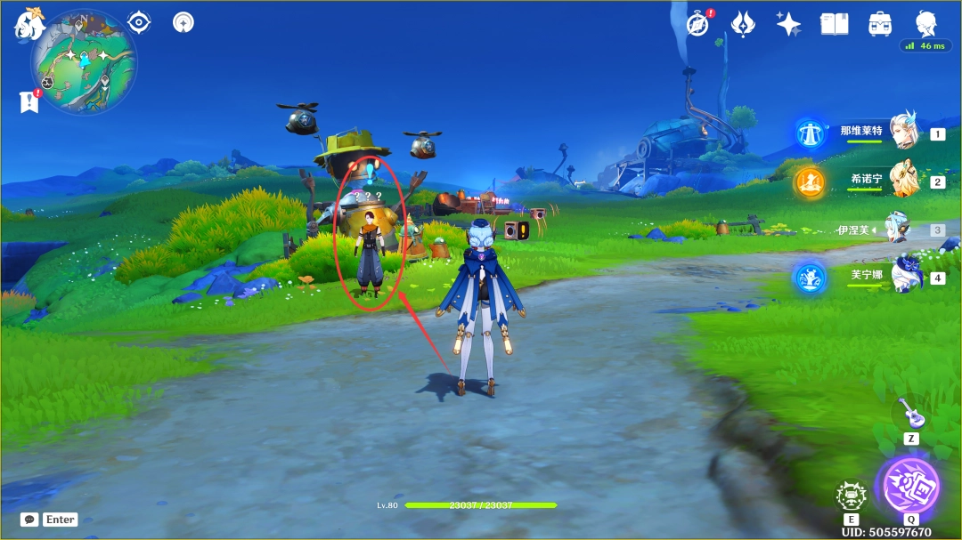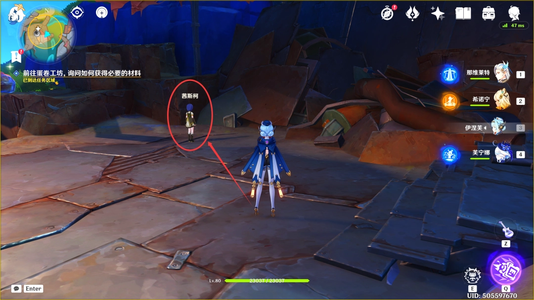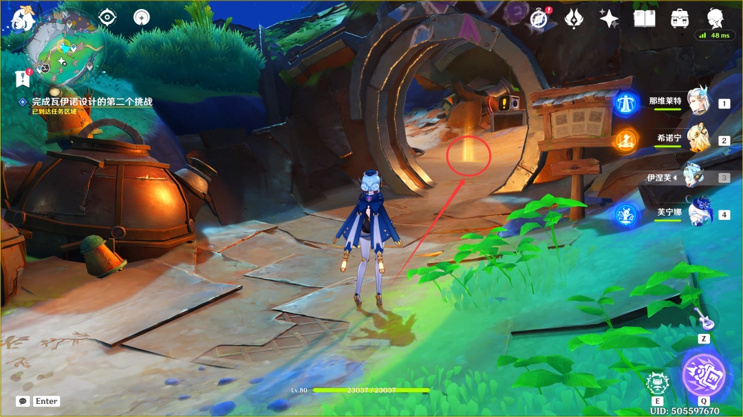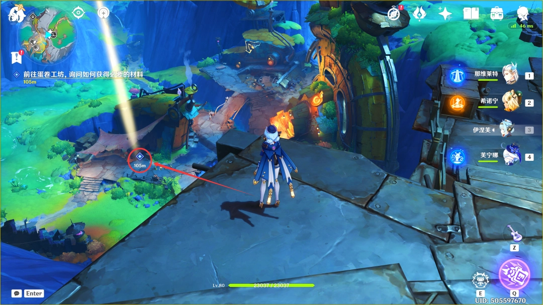 这里我们传送到「叮铃哐啷蛋卷工坊」东北方的锚点,来到下图位置
