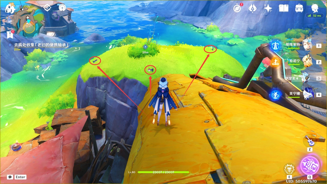 过完剧情后,我们来到高处,利用「月矩力」吸取这里的三个「老旧的便携轴承」即可(也可以选择直接靠近拾取)