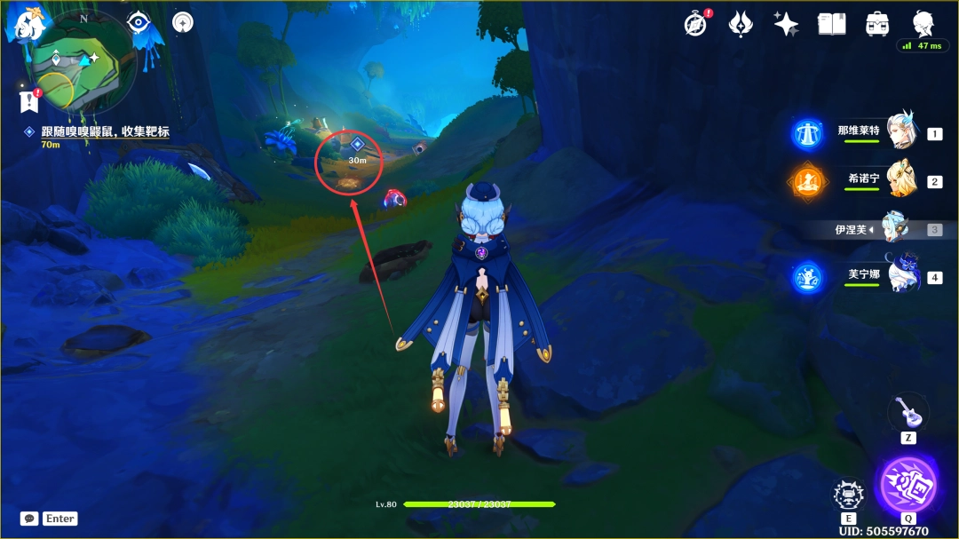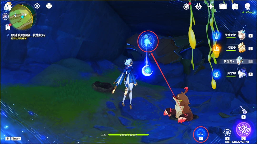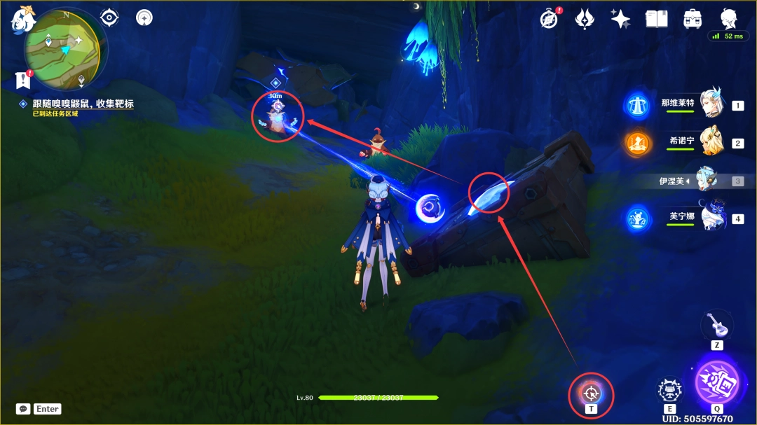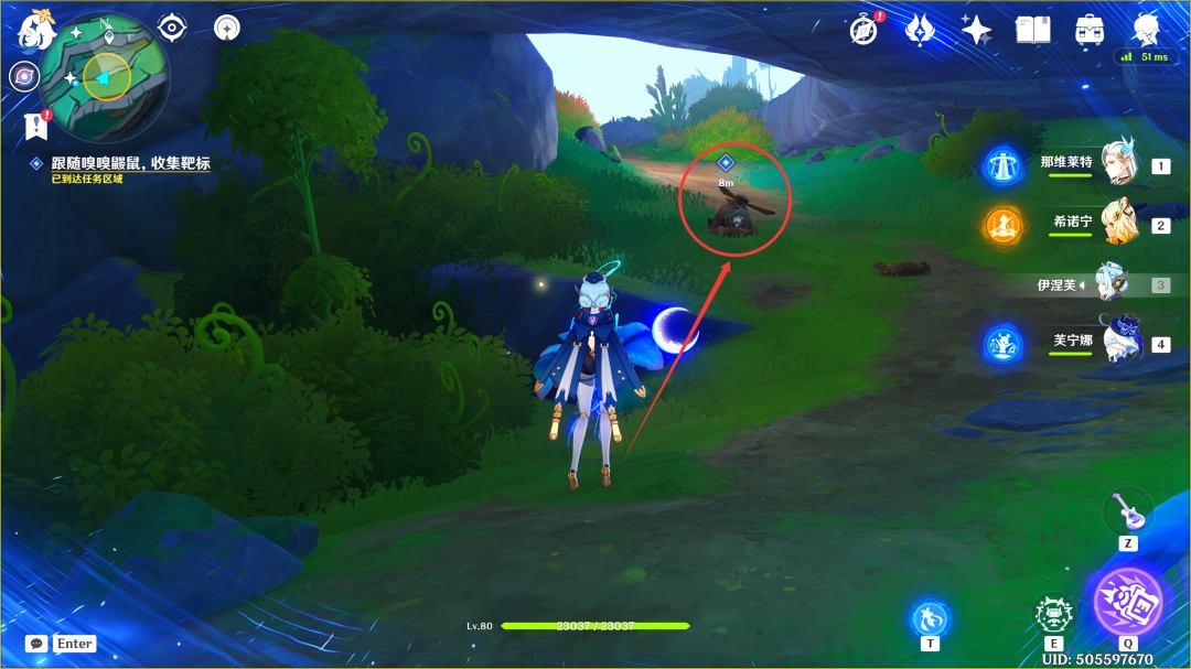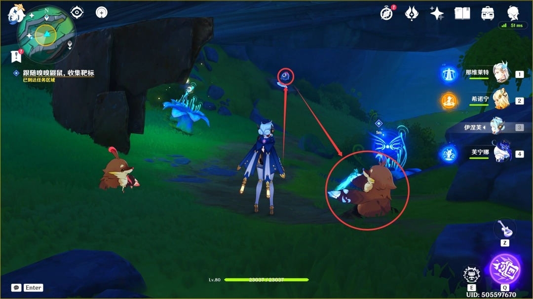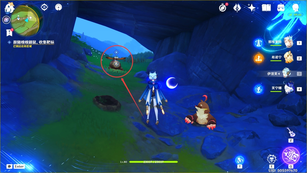 过完剧情后,我们跟随嗅嗅鼹鼠(这里过去拾取靶标即可)