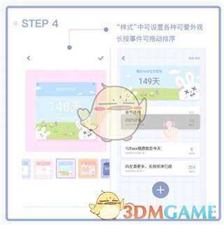 “样式”中可设置各种各样可爱外观,长按倳件可拖动排序。