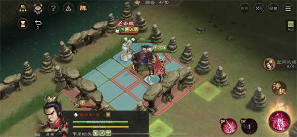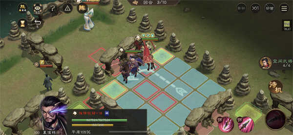 曹操开加速的buff,输出位才能走到左上角的格子。